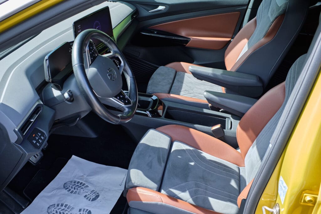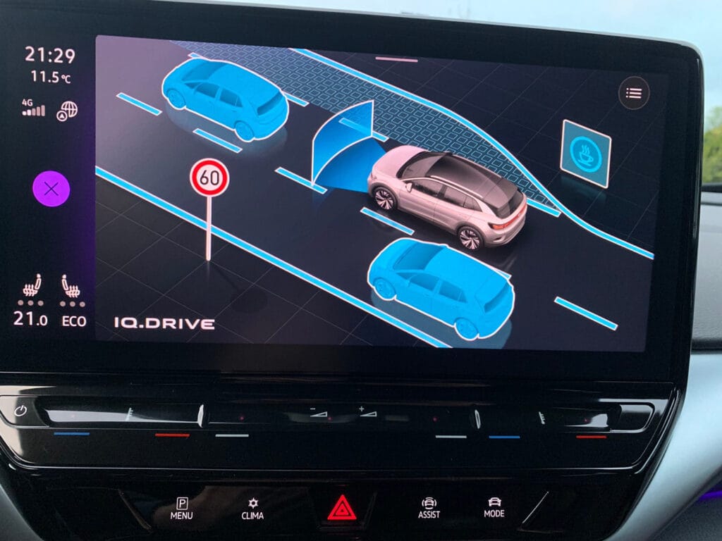 Parfait pour les tâches quotidiennes et les longs trajets. Pour les longs trajets, il existe un régulateur de vitesse adaptatif avec assistants de conduite qui rendent le voyage confortable tant pour le conducteur que pour tous les passagers, il y a un très bon espace pour les jambes sur les sièges arrière afin que les personnes de grande taille puissent s’y asseoir avec un grand confort. La voiture a une bonne autonomie avec environ 500 km WLTP. Il faut supposer que l’autonomie dépend du style de conduite, de la température et des conditions routières.